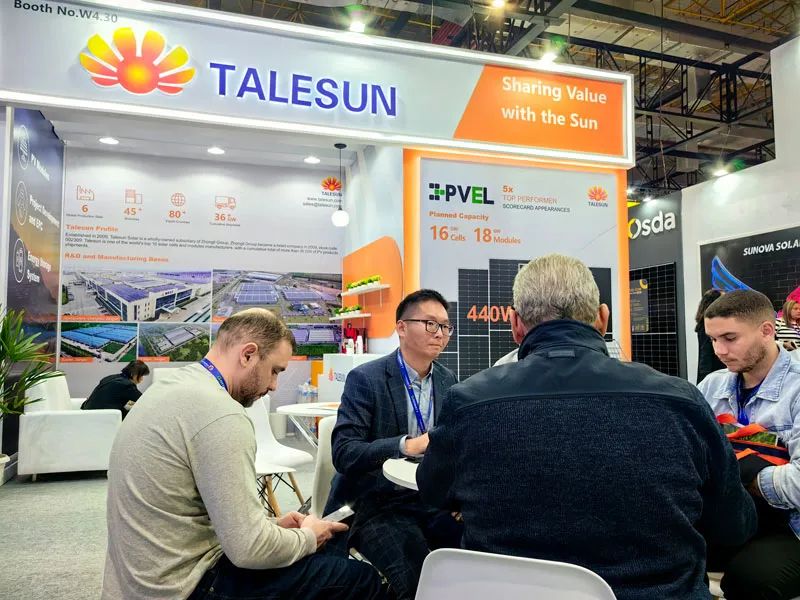 在展會(huì)上,騰暉光伏不僅重點(diǎn)展示了590W和620W雙面雙玻N型組件還展示了公司在大型地面電站、分布式光伏和農(nóng)業(yè)光伏等領(lǐng)域的綜合解決方案和成功案例。這些方案涵蓋了從項(xiàng)目規(guī)劃、設(shè)計(jì)、施工到運(yùn)維的全生命周期服務(wù),為南美地區(qū)的客戶提供了一站式的光伏解決方案。期間,騰暉光伏海外營(yíng)銷團(tuán)隊(duì)還與南美本土企業(yè)和研究機(jī)構(gòu)就光伏技術(shù)在該地區(qū)的應(yīng)用前景與未來(lái)合作展開(kāi)了深入探討。