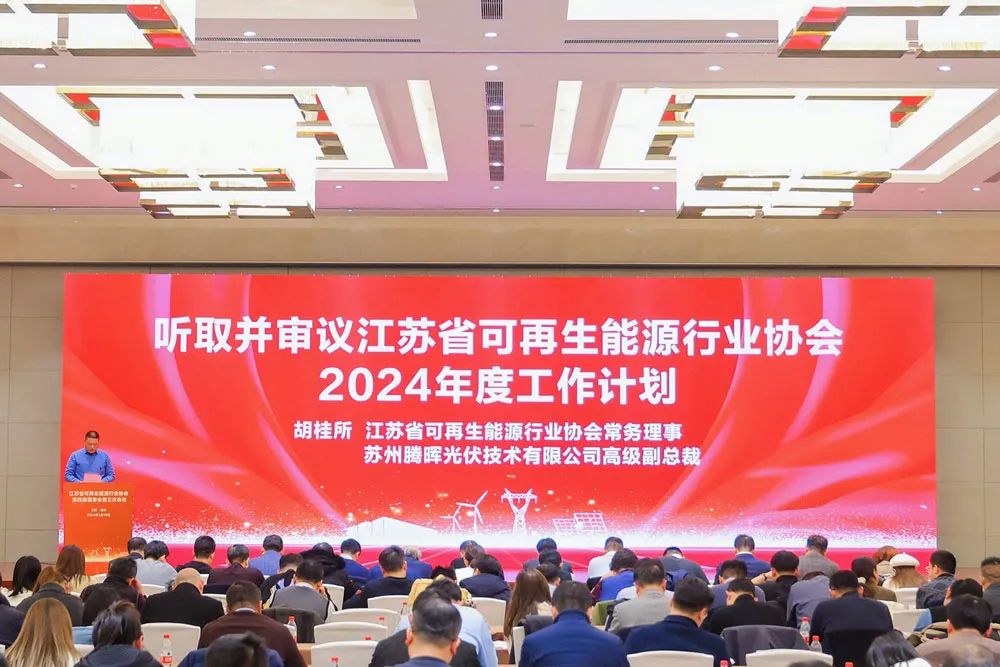 2024年1月19日,江蘇省可再生能源行業(yè)協(xié)會第四屆理事會第三次會議在南京隆重舉行。作為可再生能源領域的領軍企業(yè)之一,騰暉光伏高級副總裁胡桂所應邀出席此次會議。期間受協(xié)會委托代表協(xié)會宣讀了《江蘇省可再生能源行業(yè)協(xié)會2024年度工作計劃》,并與協(xié)會各理事共同探討了可再生能源的未來發(fā)展方向。