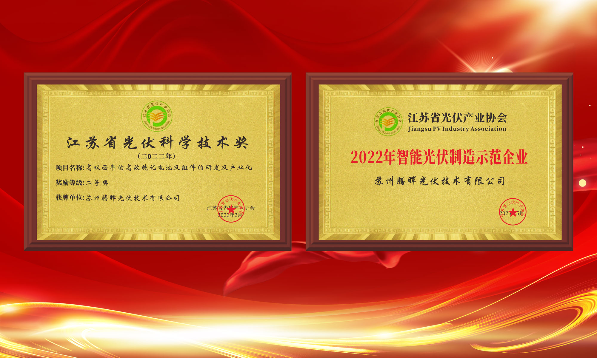 騰暉光伏榮獲“2022年智能光伏制造示范企業(yè)”及“江蘇省光伏科學(xué)技術(shù)獎(jiǎng)”兩項(xiàng)殊榮!