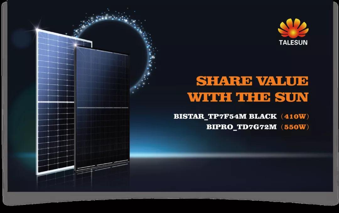 本屆展會上,騰暉光伏針對當(dāng)?shù)厥袌鲂枨笳钩鰞煽罟夥M件產(chǎn)品,包括410W 的BISTAR系列黑組件和550W的BIPRO系列雙玻組件。兩款產(chǎn)品都采用了182mm大尺寸半片電池片和多主柵設(shè)計,有效提升轉(zhuǎn)換效率和降低能源輸出損耗,適用于多種應(yīng)用場景。