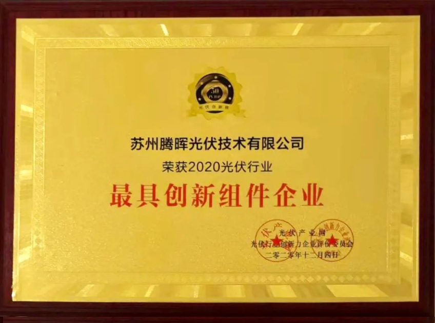 12月4日,由山東省太陽能行業(yè)協(xié)會(huì)和光伏產(chǎn)業(yè)網(wǎng)聯(lián)合發(fā)起的以“創(chuàng)新賦能 共迎平價(jià)”為年度主題的2020第五屆光伏創(chuàng)新大會(huì)(PVIC 2020)在山東濟(jì)南召開,同期舉辦了「PV TOP 50」2020光伏創(chuàng)新榜頒獎(jiǎng)典禮。經(jīng)過激烈的角逐,騰暉光伏不負(fù)眾望,憑借卓越高效的組件產(chǎn)品以及不斷創(chuàng)新的企業(yè)經(jīng)營理念,獲評(píng)“2020光伏行業(yè)最具創(chuàng)新組件企業(yè)”。